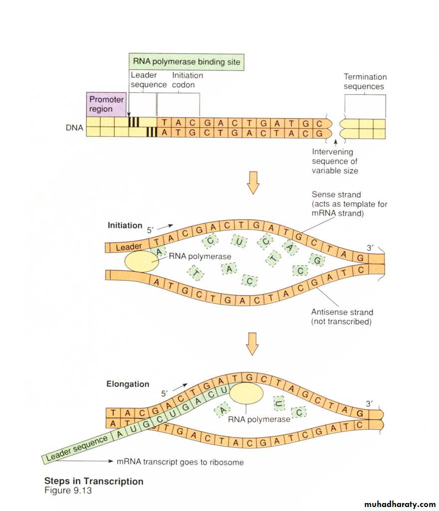 The start of a gene in the direction of transcription is called a promoter.mRNA formed directs protein synthesis.