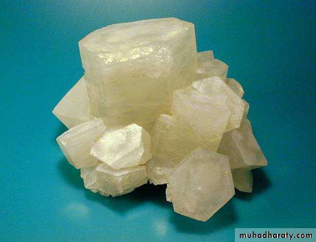 • These hexagonal CALCITE crystals nicely show the six sided prisms as well as the basal pinacoid.Two subsystems':