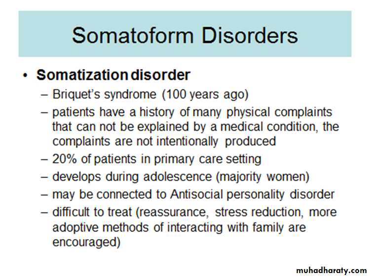 Types of Somatoform DisordersSomatization Disorder (a.k.a. Briquet's syndrome)