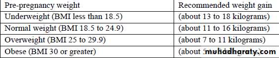 -Weight gain during pregnancy has to be estimated according to the pre- pregnancy weight of the mother: