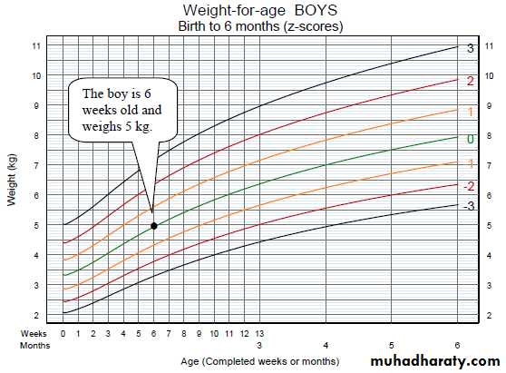 The birth weight is used as the 1st reading and wt is measured monthly and plotted on the chart joined by curve (growth curve) , The upper and lower lines on the chart correspond approximately "average" weight of healthy children (WHO "reference“ weights). The space between two lines has been called the {Road to Heath}, In : normal child ---------Up going curve.