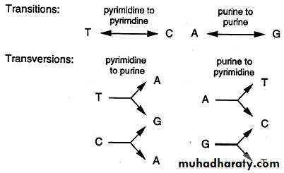 Transversion: when a purine is substituted for a pyrimidine or a pyrimidine replaces a purine.
