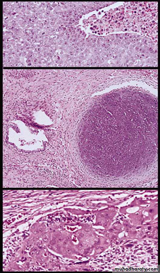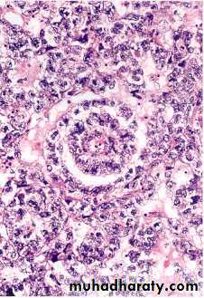 • Embryonal carcinoma (the primitive germ cells transform into totipotential cells which largely remain undifferentiated).