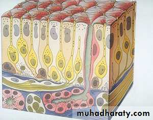 (c) Basal cells—are conical in shape, do not reach the surface and give rise to other cell types