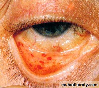 Petechiae: conjunctiva, buccal mucosa, limbs21