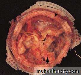 Mass of platelets and fibrin, rich in bacteria, scanty inflammatory cellsSites: heart valves, septal defect, chordae tendineae or mural endocardium