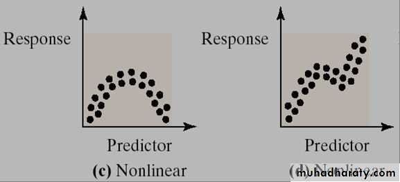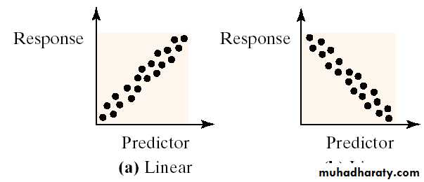 * Bivariate data: is data in which two variables are measured on an individual. (x, y)The response( dependent) variable is the variable whose value can be explained or determined based upon the value of the predictor( independent) variable