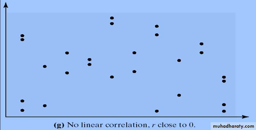 When there is no linear relationship between the variables or only a weak relationship, the value of r will be close to 0.• Calculating correlation coefficient: Example: