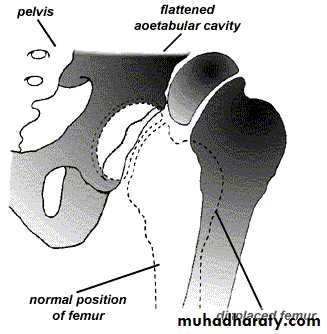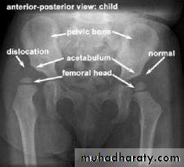DDH include spectrum of disorders:1. Acetabular dysplasia without displacment of femoral head.2. Hip instability which either: subluxation Dislocation3. Teratological dislocation.