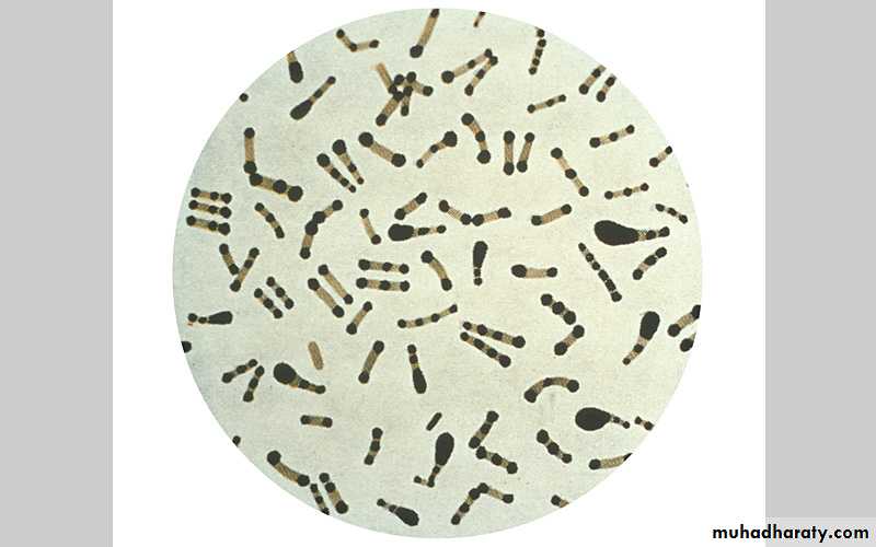 *swabs from the nose, throat, or other suspected lesions must be obtained before antimicrobial drugs are administered.*Smears stained with alkaline methylene blue or Gram stain show beaded rods in typical arrangement.