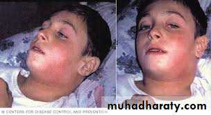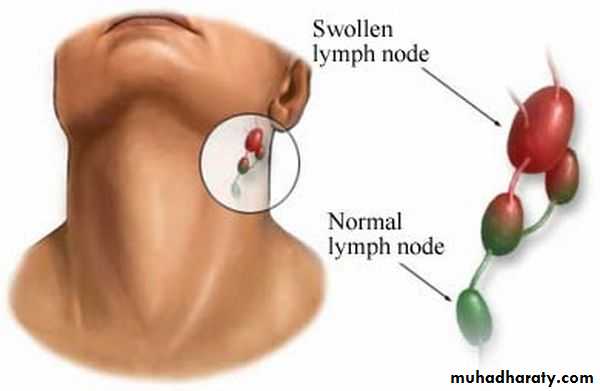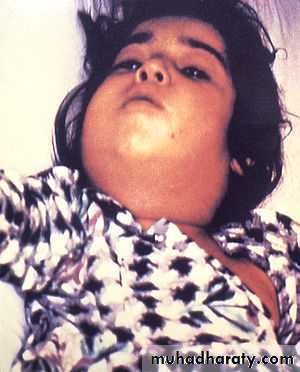 *Enlarge of lymph nodes in the neck, and edema of the entire neck, with distortion of the airway.
