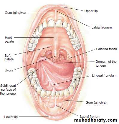 • 1.Oral cavity (mouth)• 2.Pharynx (throat)