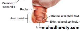 -The rectum, which is the widest division of the large intestine, and ends at the anus.