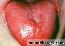 Angular stomatitis (↓B12, folate, iron)Glossitis (↓B12, folate, iron)