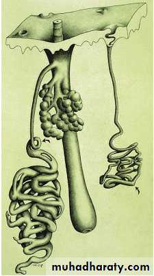 Apocrine glands are limited to the axillae, nipples,periumbilical area, perineum and genitalia.The coiled tubular glands (larger than eccrine glands) lie deep in the dermis, and during sweating the luminal part of their cells is lost (decapitation secretion).