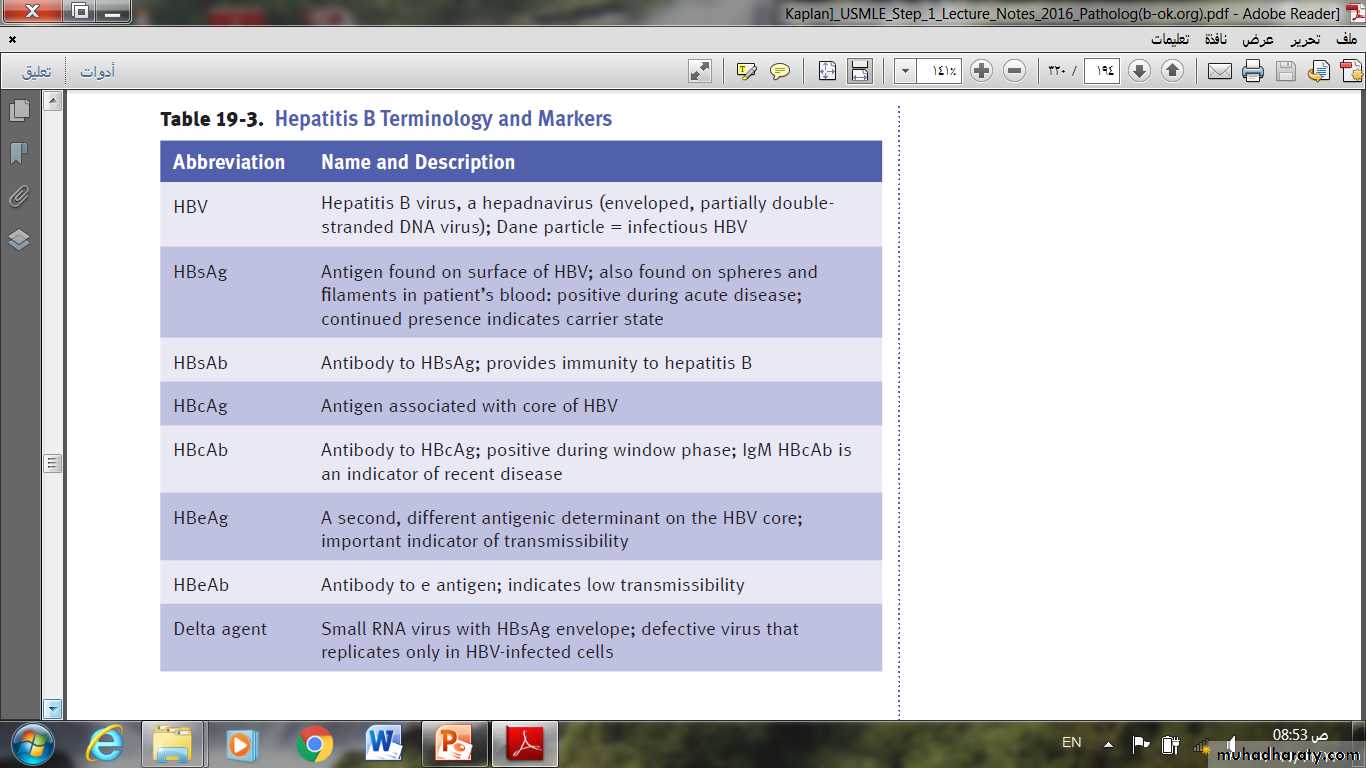 • HBeAg, HBV-DNA, and DNA polymerase appear in serum soon after HBsAg, and all signify active viral replication.Persistence of HBeAg is an important indicator of continued viral replication, infectivity, and probable progression to chronic hepatitis.