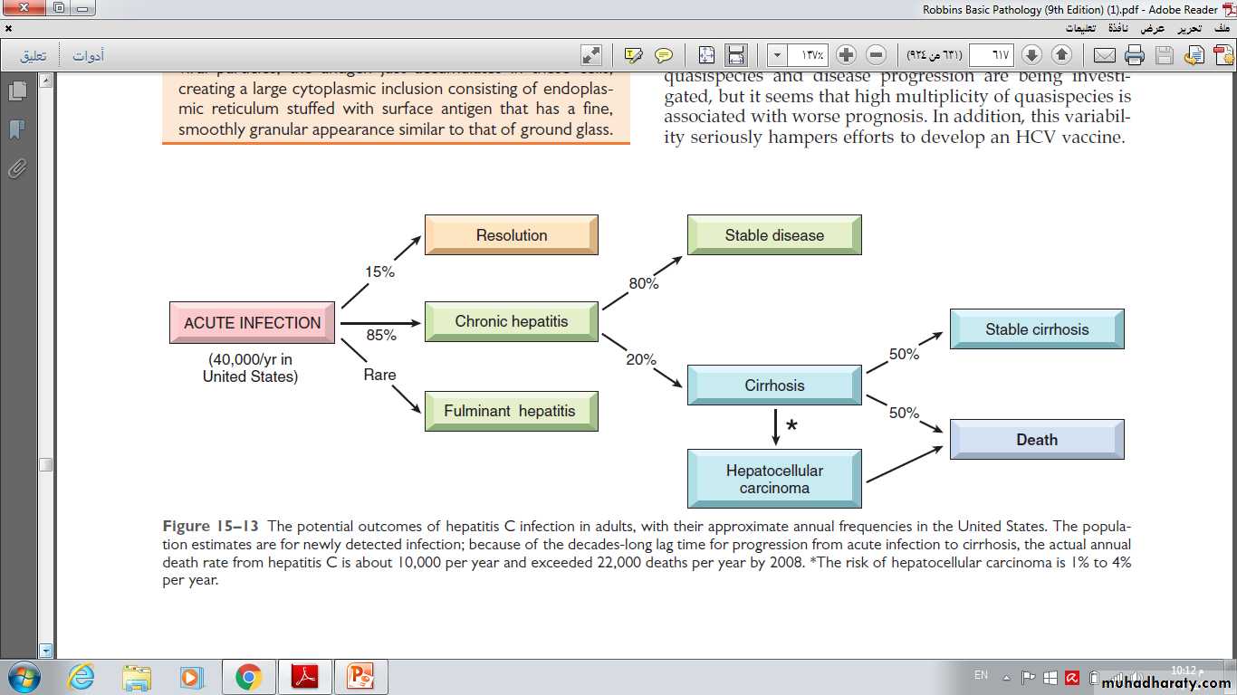The potential outcomes of hepatitis C infection in adults, with their approximate annual frequencies in the United States.