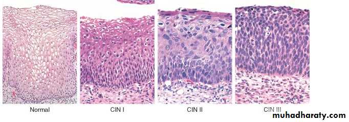 On the basis of histology, precancerous changes are graded asCIN I: Mild dysplasia
