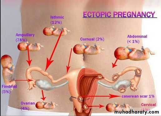 It occurs in 1% of pregnancies. In more than 90% it is a tubal pregnancy; other sites include the ovaries & abdominal cavity. Any factor that retards passage of the ovum along its course through the tube to the uterus predisposes to an ectopic pregnancy.