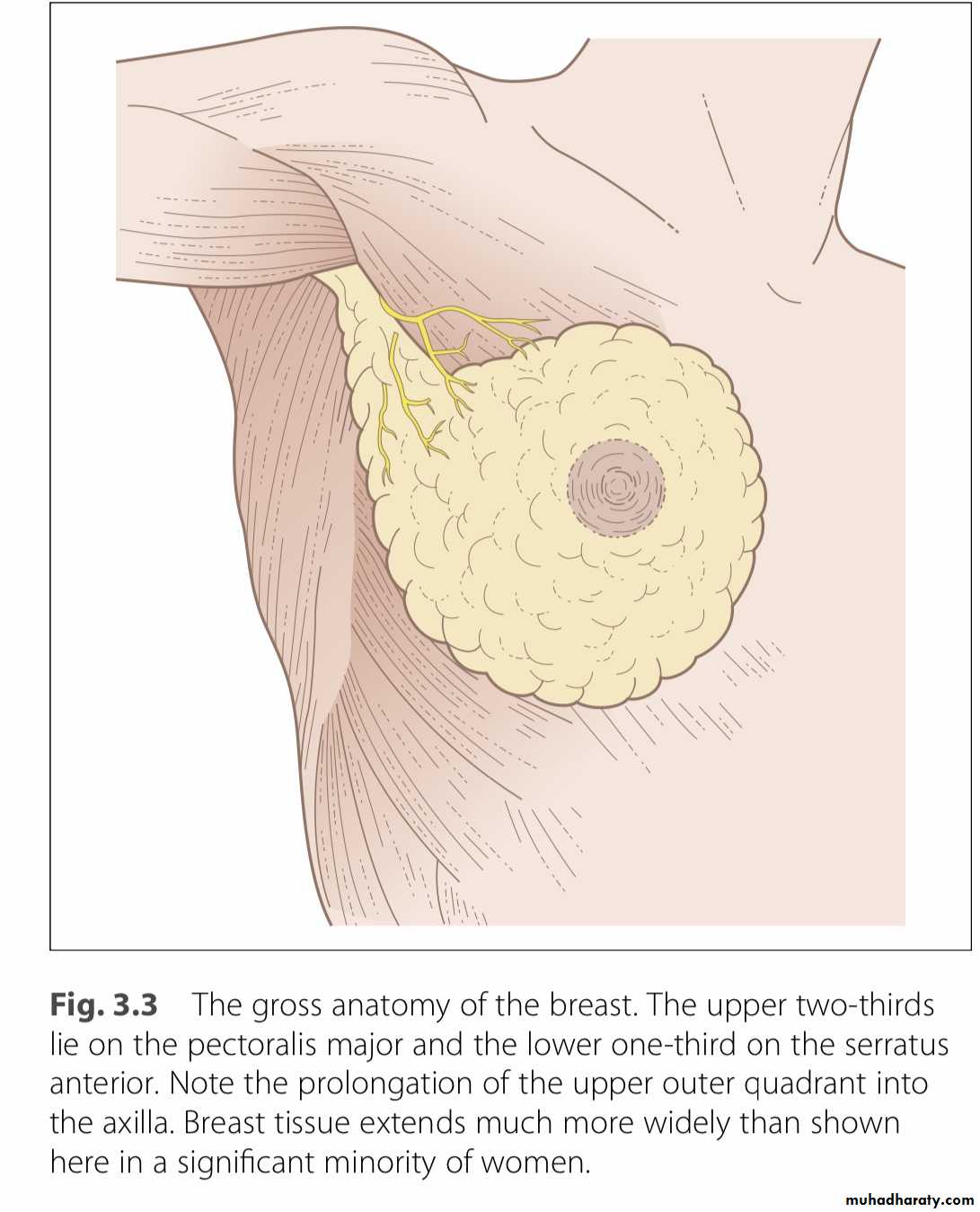The breasts are located within the superficial fascia of the anterior chest wall.Extent