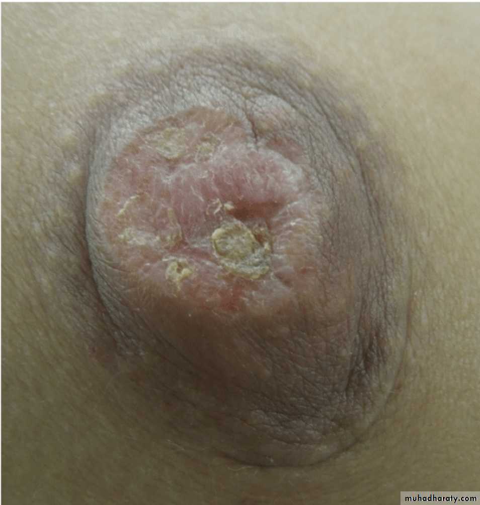 It is unilateral and rarely bilateral chronic eczematous eruption of nipple which can progress to ulcerated weeping lesion.