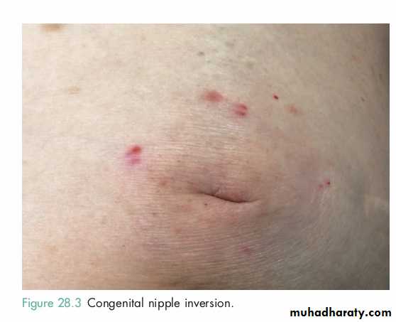 It’s a serious pathological condition. Occurs later in life.A slit -like retraction of the nipple may be caused by :