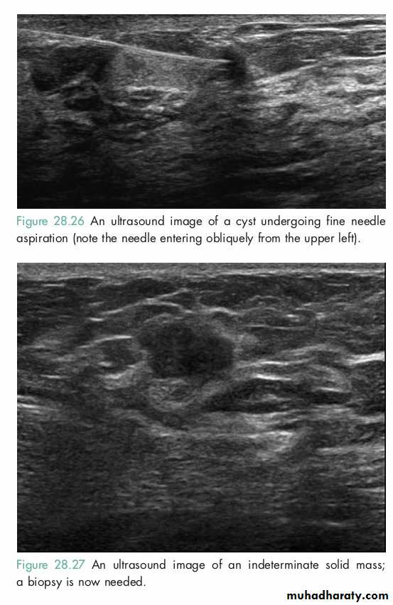 Ultrasound is particularly useful in young women with dense breasts in whom mammograms are difficult to interpret, and in distinguishing cysts from solid lesions.