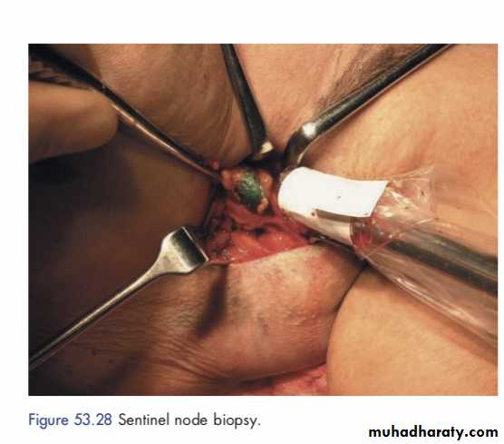 Sentinel node dissection is the preferred method for staging of the regional lymph nodes in women with clinically node-negative invasive breast cancer. Axillary dissection may be avoided in women with 1 to 2 positive sentinel nodes who are treated with breast conserving surgery, whole breast radiation and systemic therapy.