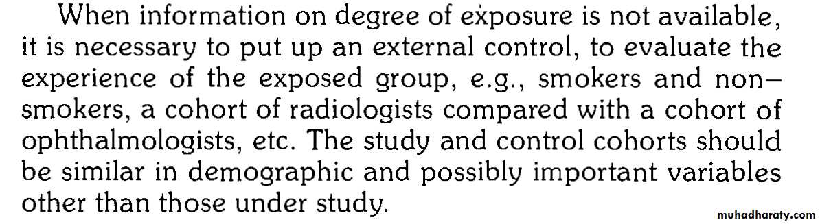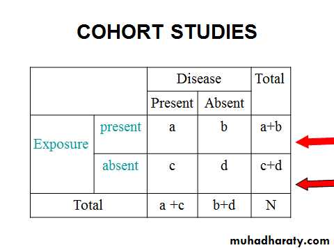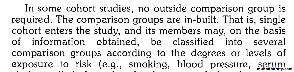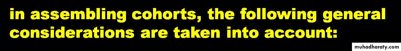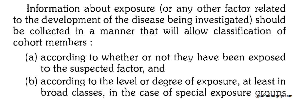 The unexposed group is called referent or comparison groupA-The cohorts must be free from disease under study, if the disease under study is coronary heart disease, the cohort members are first examined, and those who already have
