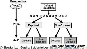 At the time exposure status is defined , all potential subjects must be free from the disease under investigation ,and illegible participants are then followed over a period of time to assess the occurrence of that outcome.