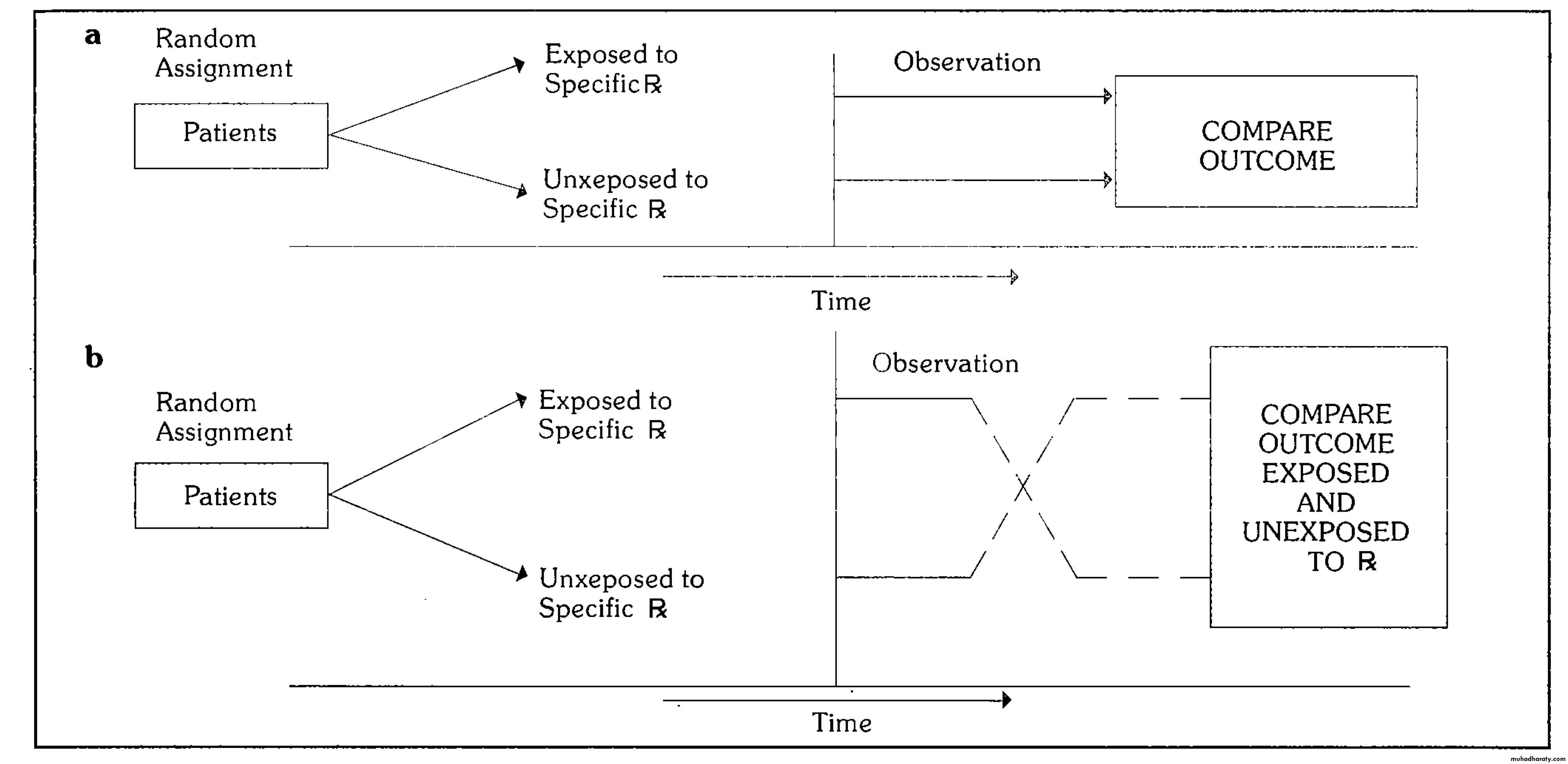 5-Follow-up: This implies examination of the experimental and control groups at a defined interval in times, in a standard manner, with equal intensity, in the same time frame till the final assessment of outcome.