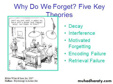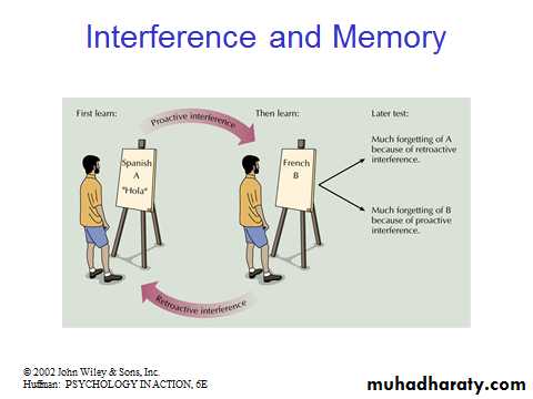 Interference theory argues that information competes for retrievalProactive interference: old information interferes with recall of new information