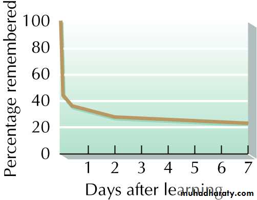 Forgetting rate is steep just after learning and then becomes a gradual loss of recall