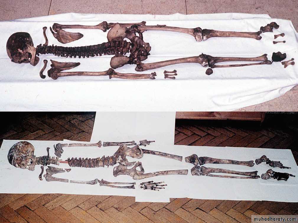 2) كون العظام تعود لشخص واحد او اكثر ويتم التثبت من ذلك من خلال قياس اطوال العظام وحجومها وازدواجية المثناة منها.