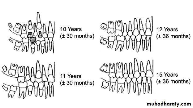ه) النواجذ الدائميةالثانية في السنة العاشرة.