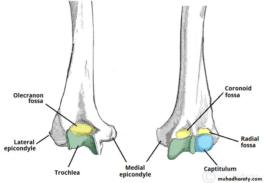 3) في سن 16-17 سنة تلتحم اللقمة الانسية بعمد العضد.