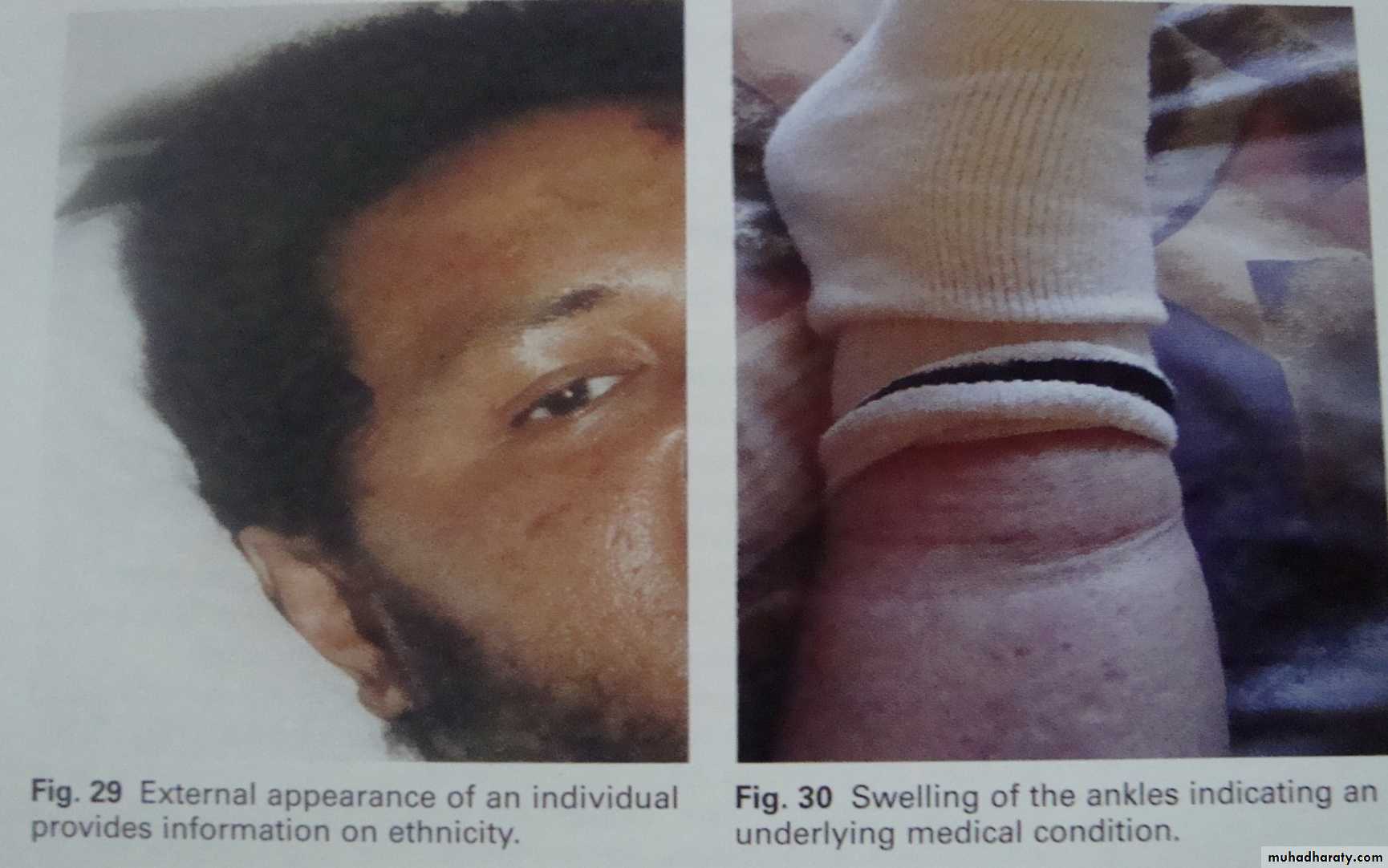 • 1) المظهر العام ويشمل الطول والوزن وعلامات النضج الفسلجي كظهور شعر الابط والعانة والوجه وبروز النهدين عند الاناث وبدء دورة الحيض. كما ان ظهور تجاعيد الجلد وظهور الشيب و طراز انتشاره هي من المظاهر العامة التي يعتمدها الطبيب لتقديرالعمر.