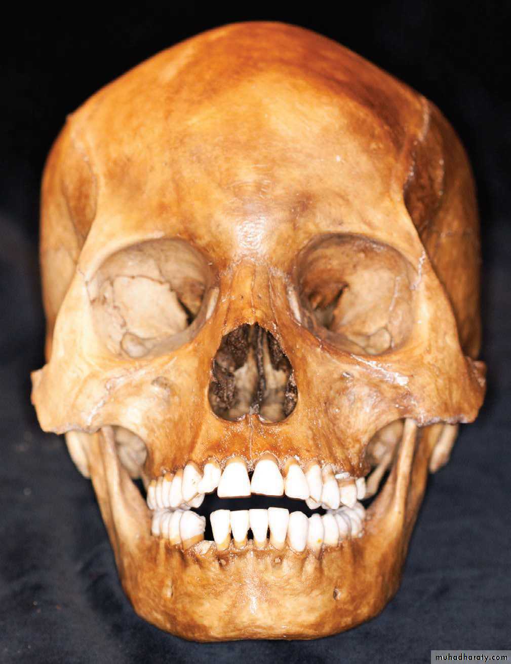قيافة العرق والسلالة من العظام: العروق البشرية الرئيسية هي: الابيض(القوقازي) والاصفر (المنغولي) والاسود (الزنجي). يستطيع الطبيب ان يحدد العرق من خلال فحص عظام الجمجمة والفك السفلي والاسنان. يميل محجر عين الزنجي الى الشكل المربع وعند المنغولي الى الشكل الدائري وعند القوقازي الى الشكل المثلث. تكون فتحات الانف ضيقة طويلة عند القوقازي وتعرض في قسمها السفلي عند المنغولي وتعرض في قاعدتها عند الزنجي. يكون القوسان الوجنيان ضخمان عند المنغولي.