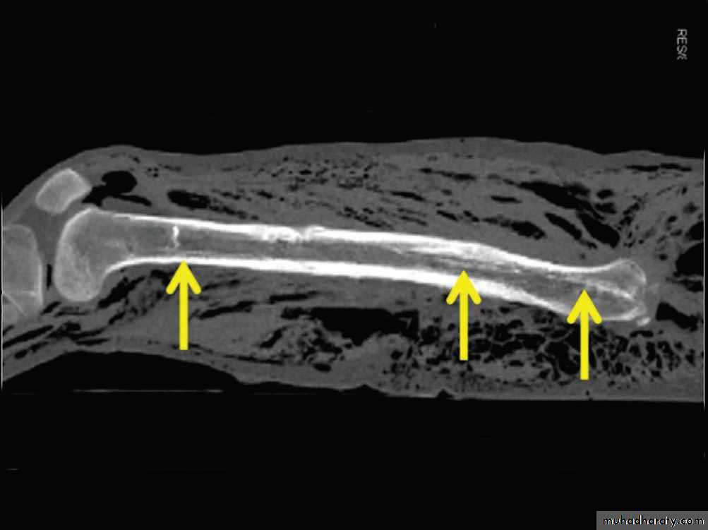 • 2) في السنة الاولى( نهاية الشهر الثالث) يظهر (متع) للعظم الرؤيسي والشصي