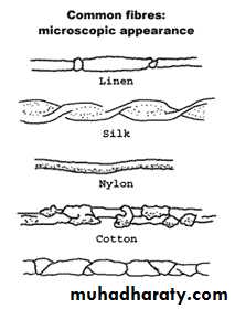 86قيافة الشعر والالياف المختلفة: قد يعثرالمحقق العدلي في محل الحادث او على المبرزات الجرمية او على ملابس الجاني او المجنى عليه او في المنطقة التناسلية ما يشتبه بكونه شعرا فيرسله الى دائرة الطب العدلي لقيافته. وفي هذه الحالة على الطبيب ان يحقق الاغراض التالية.