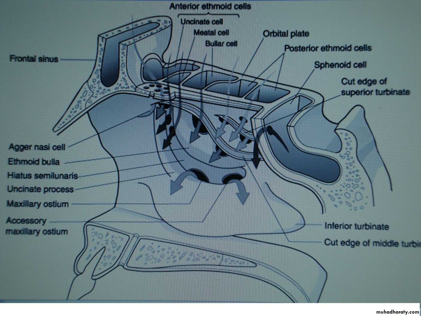 Arterial blood vessels & nerves supply: is by anterior & posterior ethmoidal arteries & nerve.