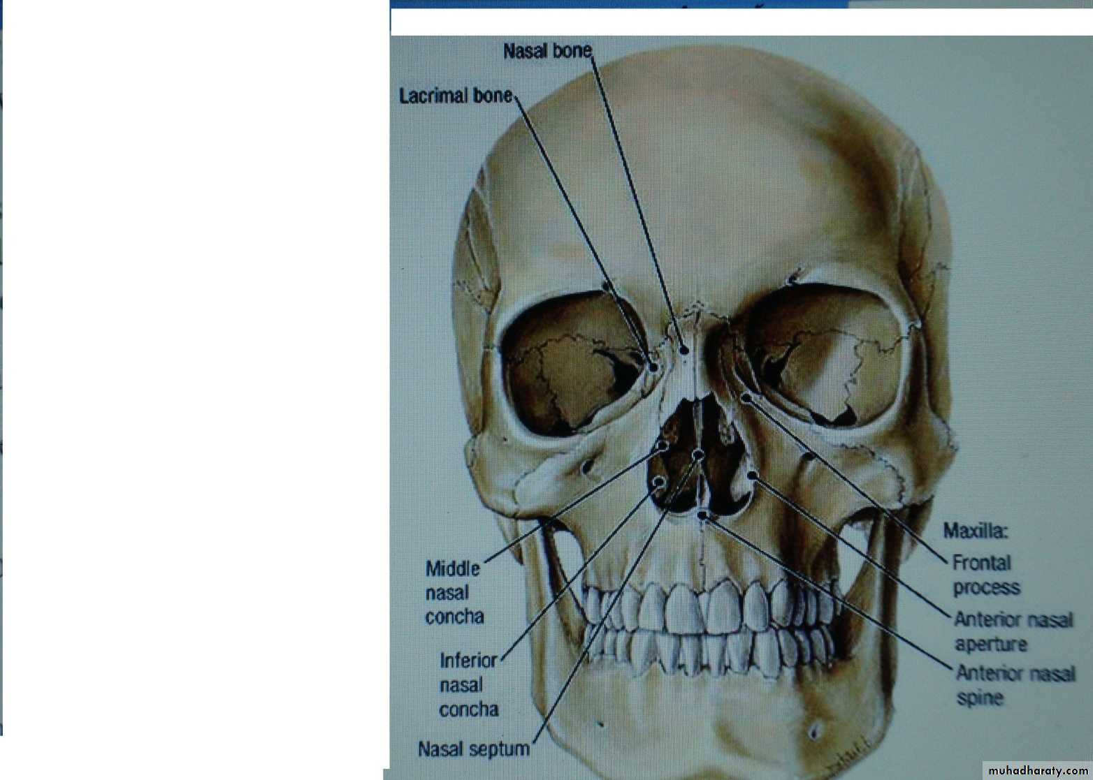 1-Nasal process of frontal bone anteriorly.