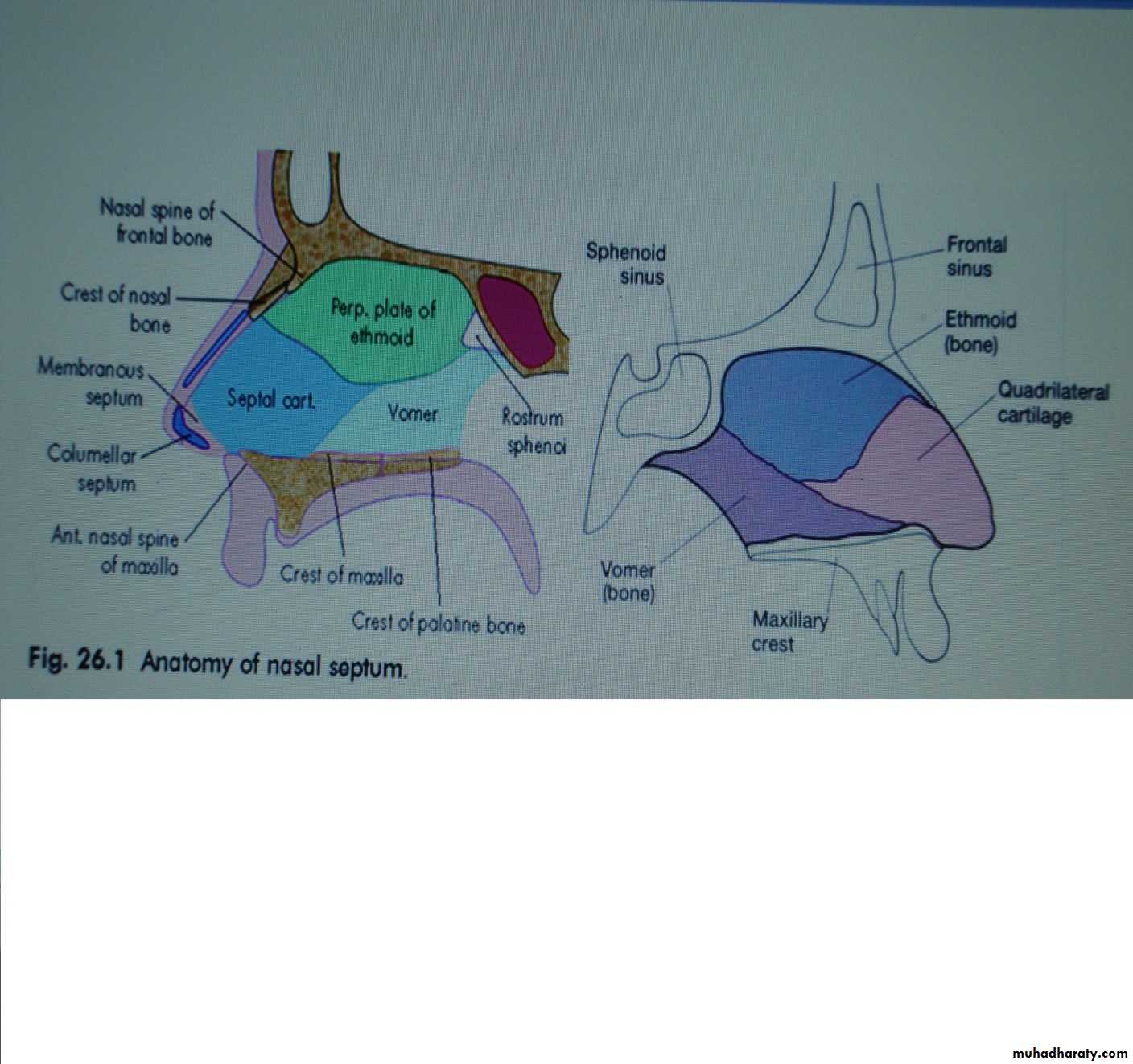 Quardrilateral cartilage in the angle between perpendicular plate of ethmoid & vomer.