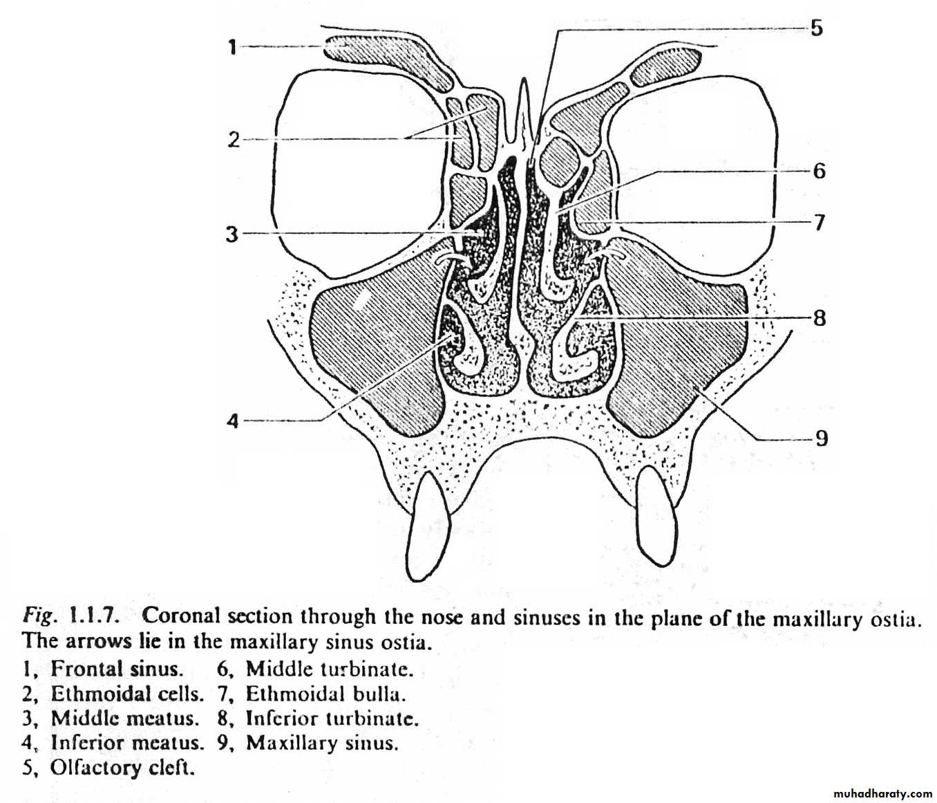 2-Haitus semilunaris: which is two dimentional space, lies between the anterior surface of bulla ethmoidalis & the posterior edge of unicinate process (uncinate process is part of ethmoid bone).