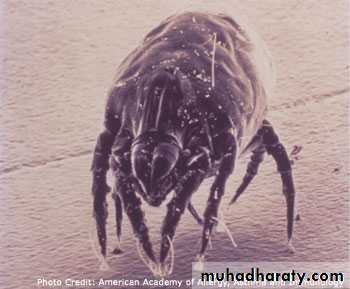 Perineal allergic rhinitis, are due to inhaled allergens independent of the season e.g. house dust mite which is found in high concentration in bedrooms, as it feeds on skin scales (see the fig. below). Other examples are the epithelial debris from the domestic cat and dogs.