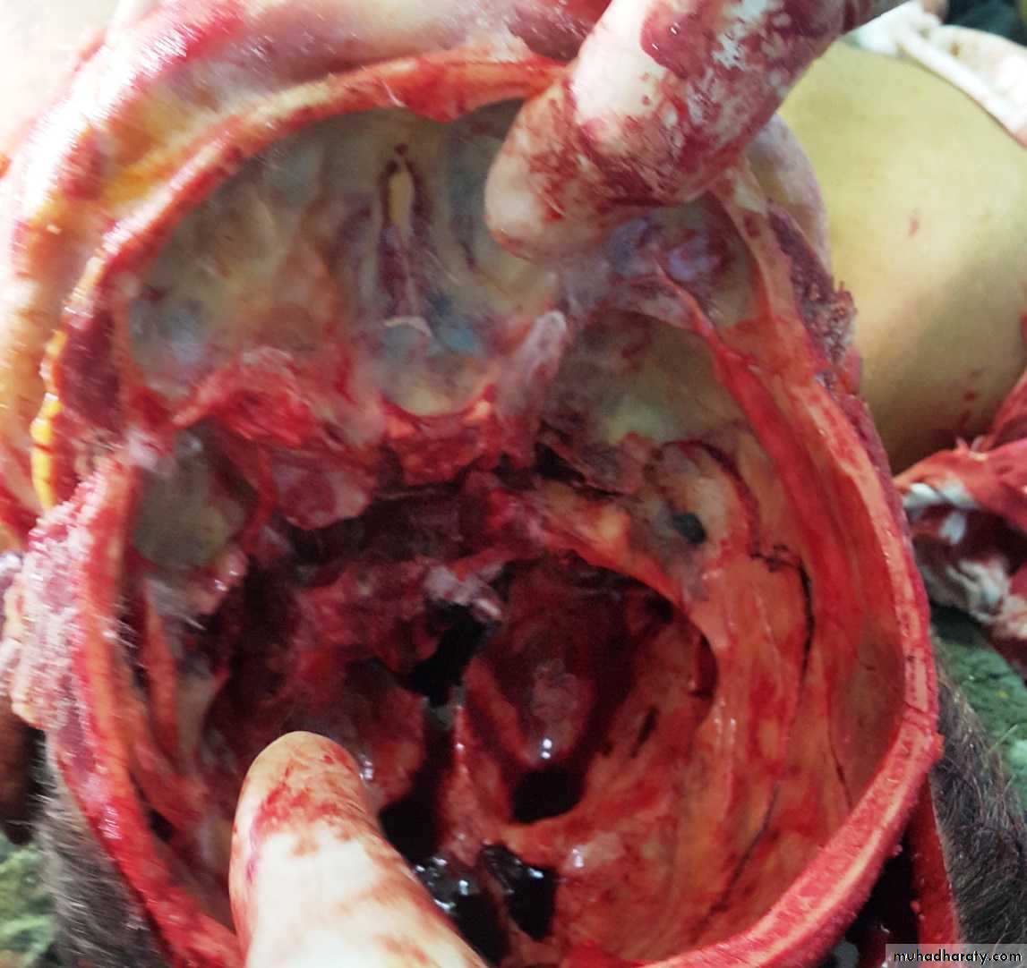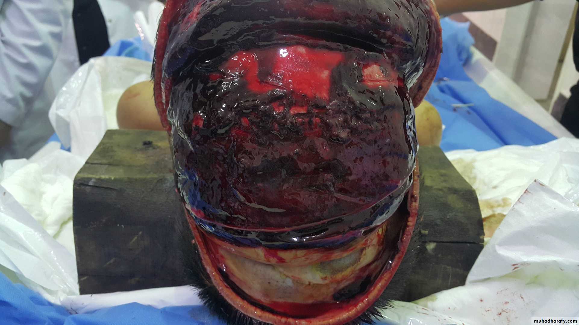 1ـ تكون أضرار الشظايا من نافذة الباب في أيمن الوجه والرقبة .