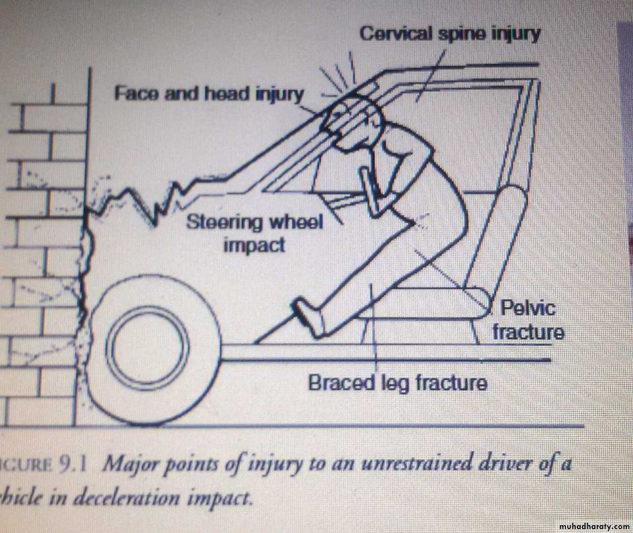الاضرار الحاصلة للسائق :ـ يرتطم سائق واسطة النقل عند حصول الاصطدام بالاشياء التالية :ـ