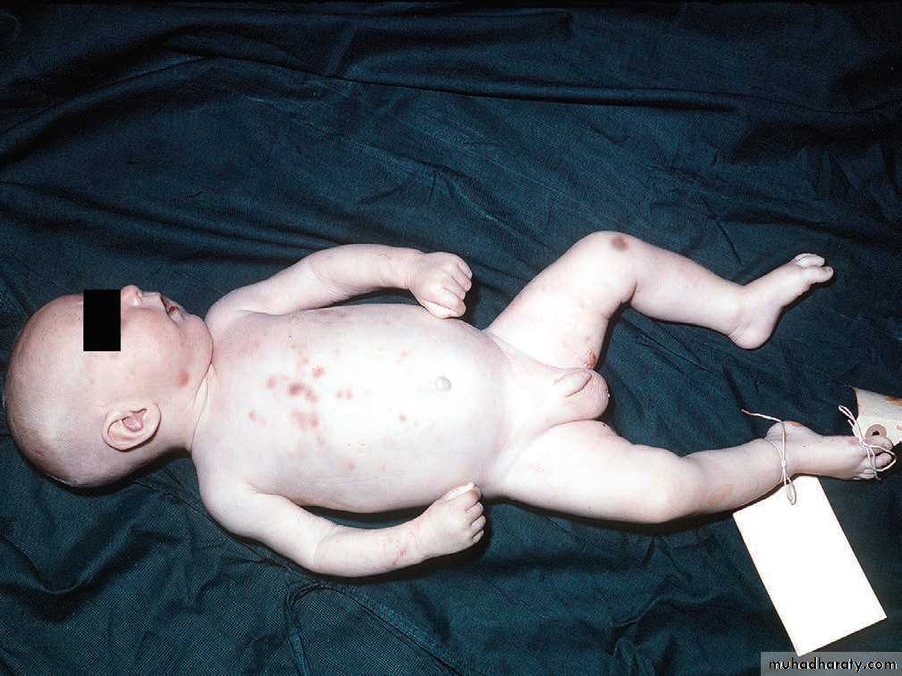 Multiple bruises on the trunk of a victim of child abuse. The bruises are of the ‘finger-tip’ type, caused by heavy prodding by adult fingers. The child died of a ruptured liver.