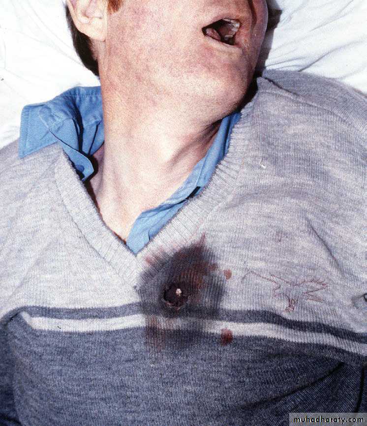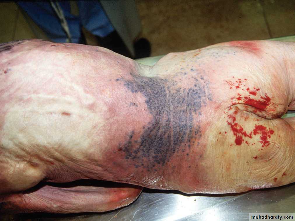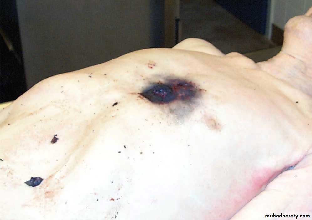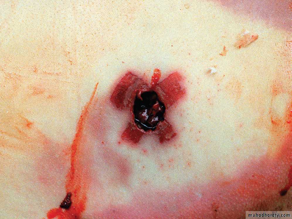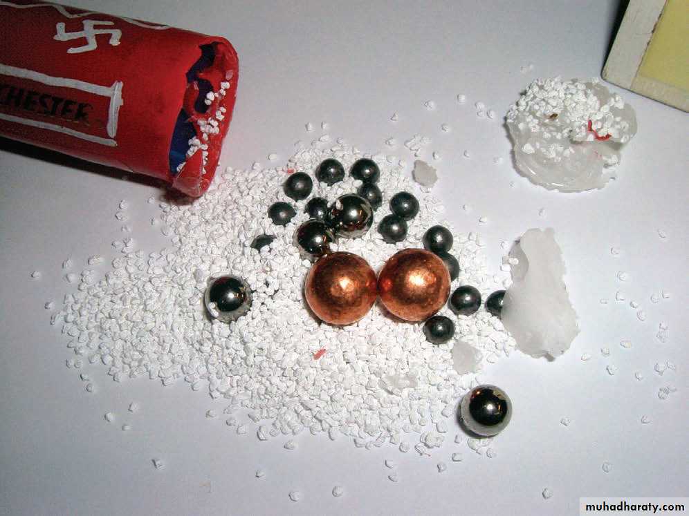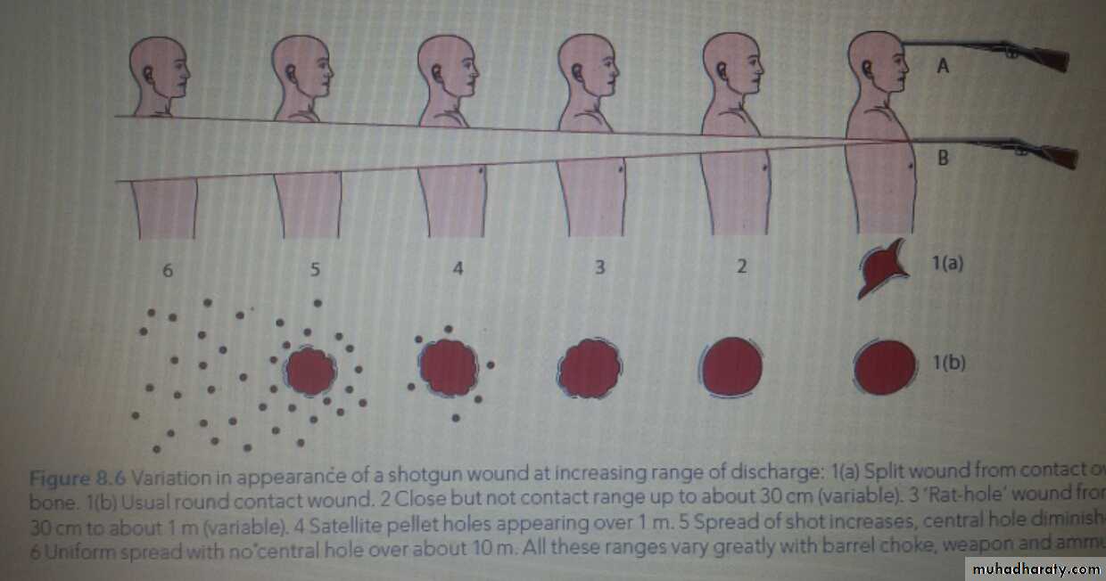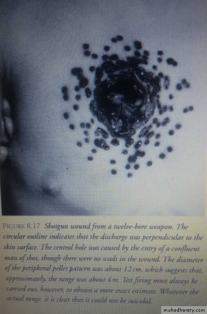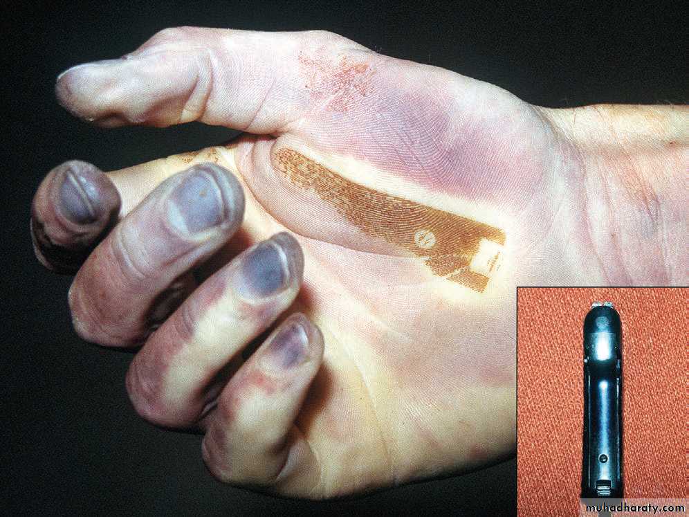 جروح الاسلحة النارية الخردقية Soot-soiling of hand that had grasped a shotgunbarrel.