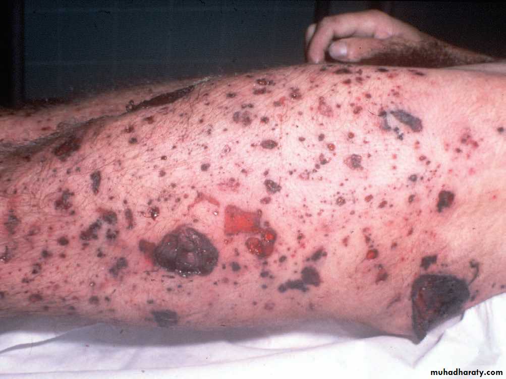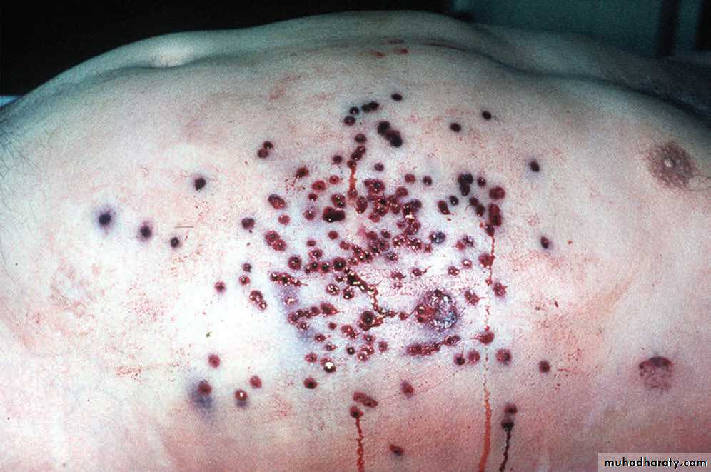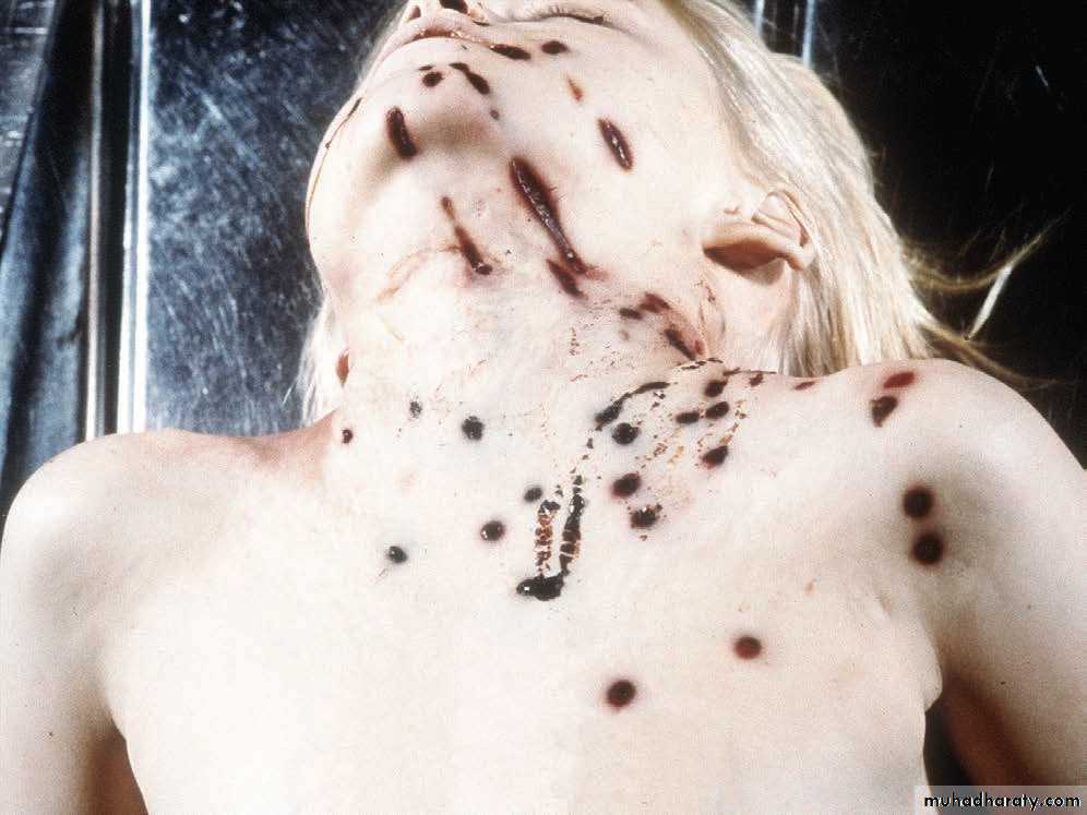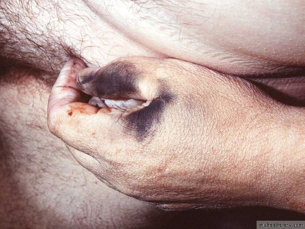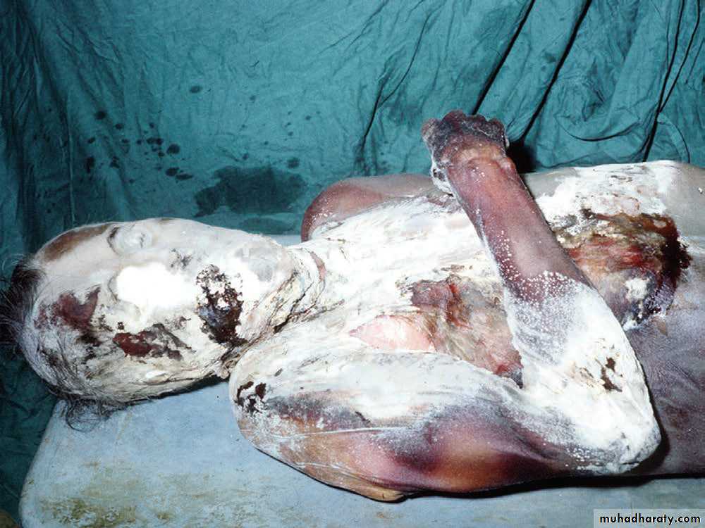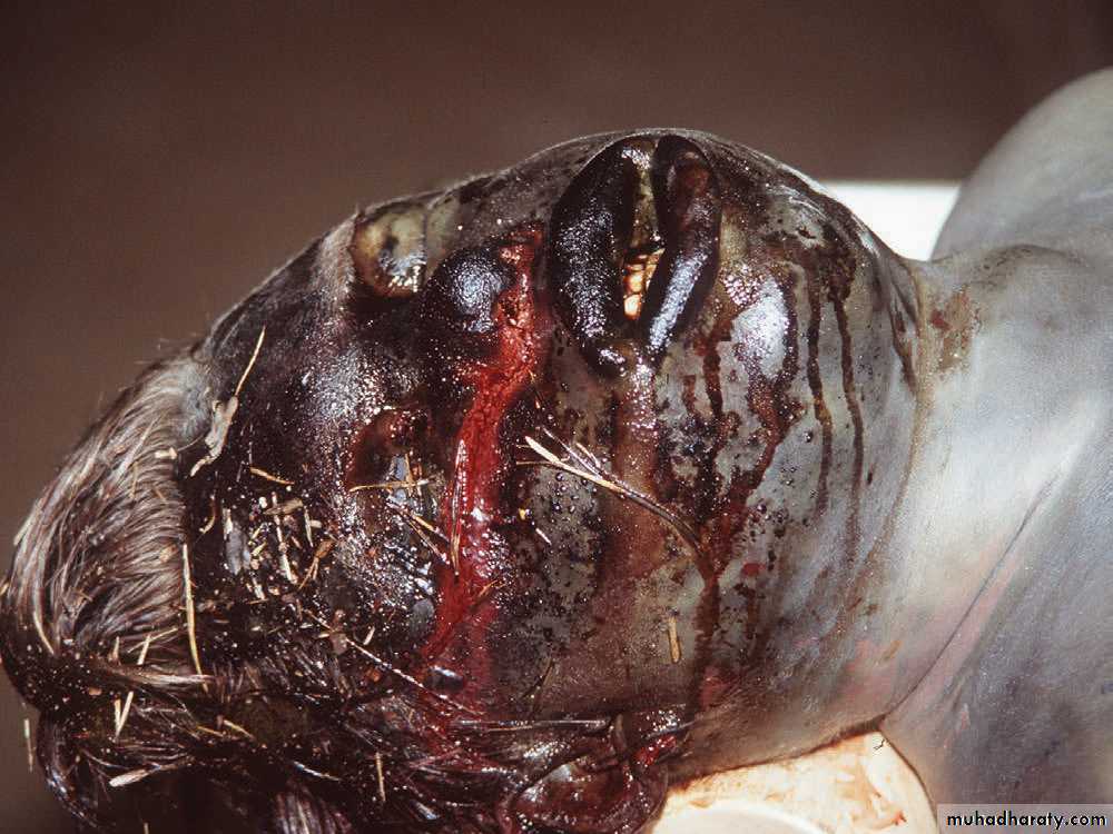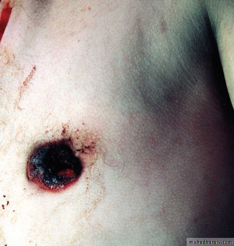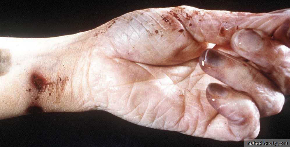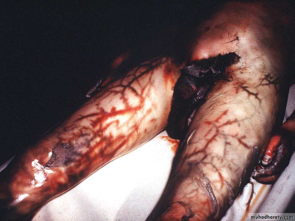 جروح الاسلحة النارية الخردقية Soot-soiling of hand that had grasped a shotgunbarrel.